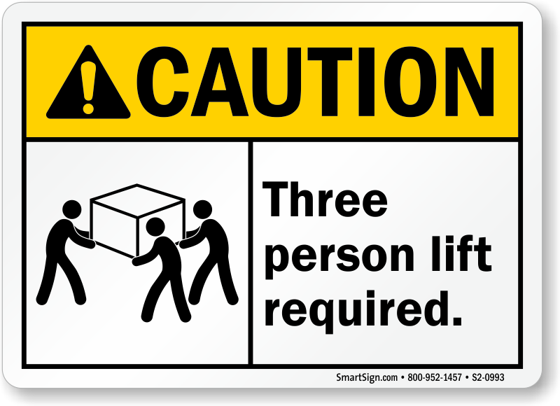 Mark heavy equipment at your facility with this Three Person Lift Required Sign to caution workers about the additional manual assistance required to lift the equipment.
