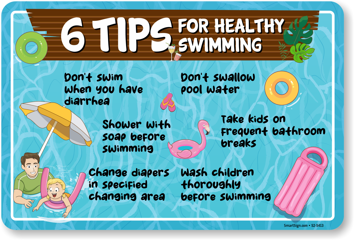 Promote safe and healthy swimming practices with this inexpensive yet effective sign.