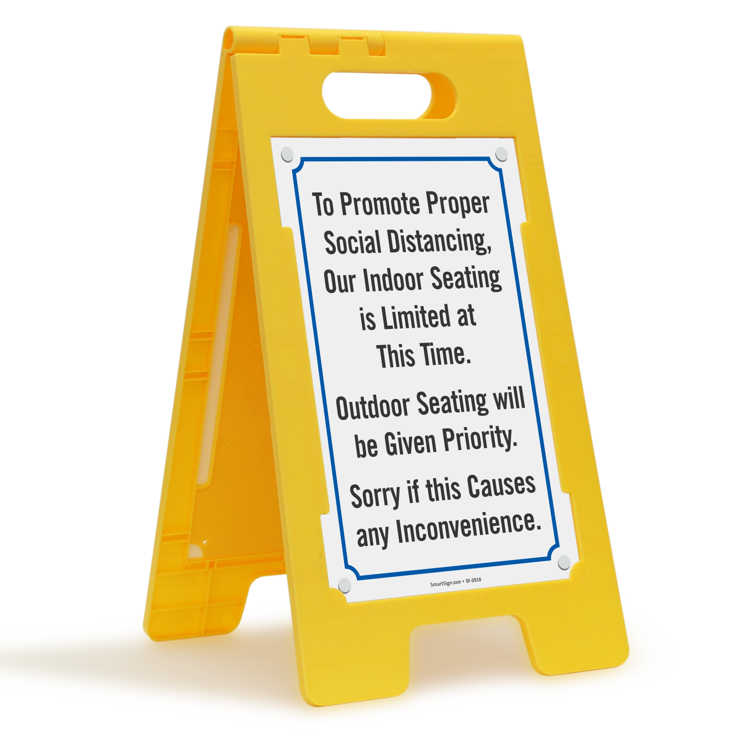 Inform people about limited indoor seating with our high-visibility two-sided FloorBoss sign.