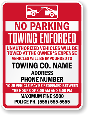 Towing Sign made from premium reflective aluminum film.