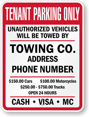 It's easy to design. Add your company name, address, phone number and fine amount. Mark parking space for your tenants only.