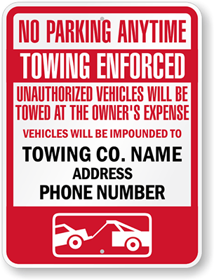 Personalize your "Towing Enforced" sign. Keep your property clear from unauthorized vehicles.