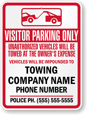 Custom Tow Away Sign: Visitor Parking Only, Unauthorized Vehicles Will Be Towed At The Owner's Expense, Vehicles Will Be Impounded To Towing Company Name, Phone Number (with Graphic) (California)...