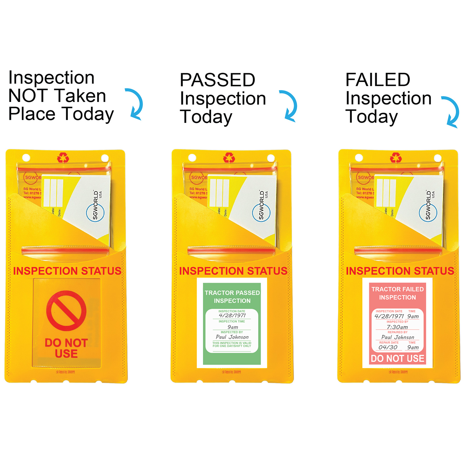 The high visibility of the yellow paddle and DO NOT USE indicator allows supervisors to see whether the inspections have taken place therefore making the operator accountable for doing the inspection every time.