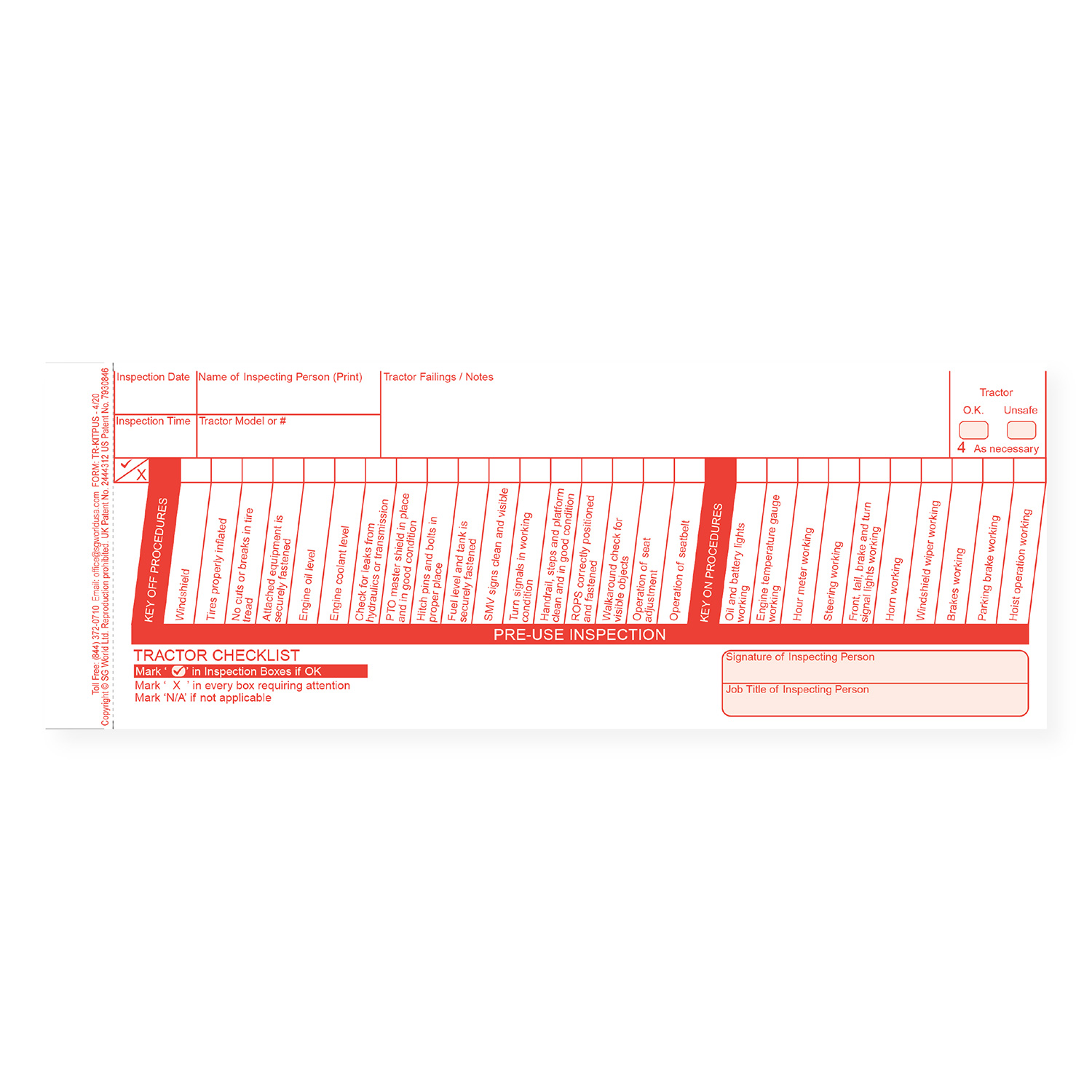 Inspection Checklist Kit: Tractor Starter Kit TG-2299