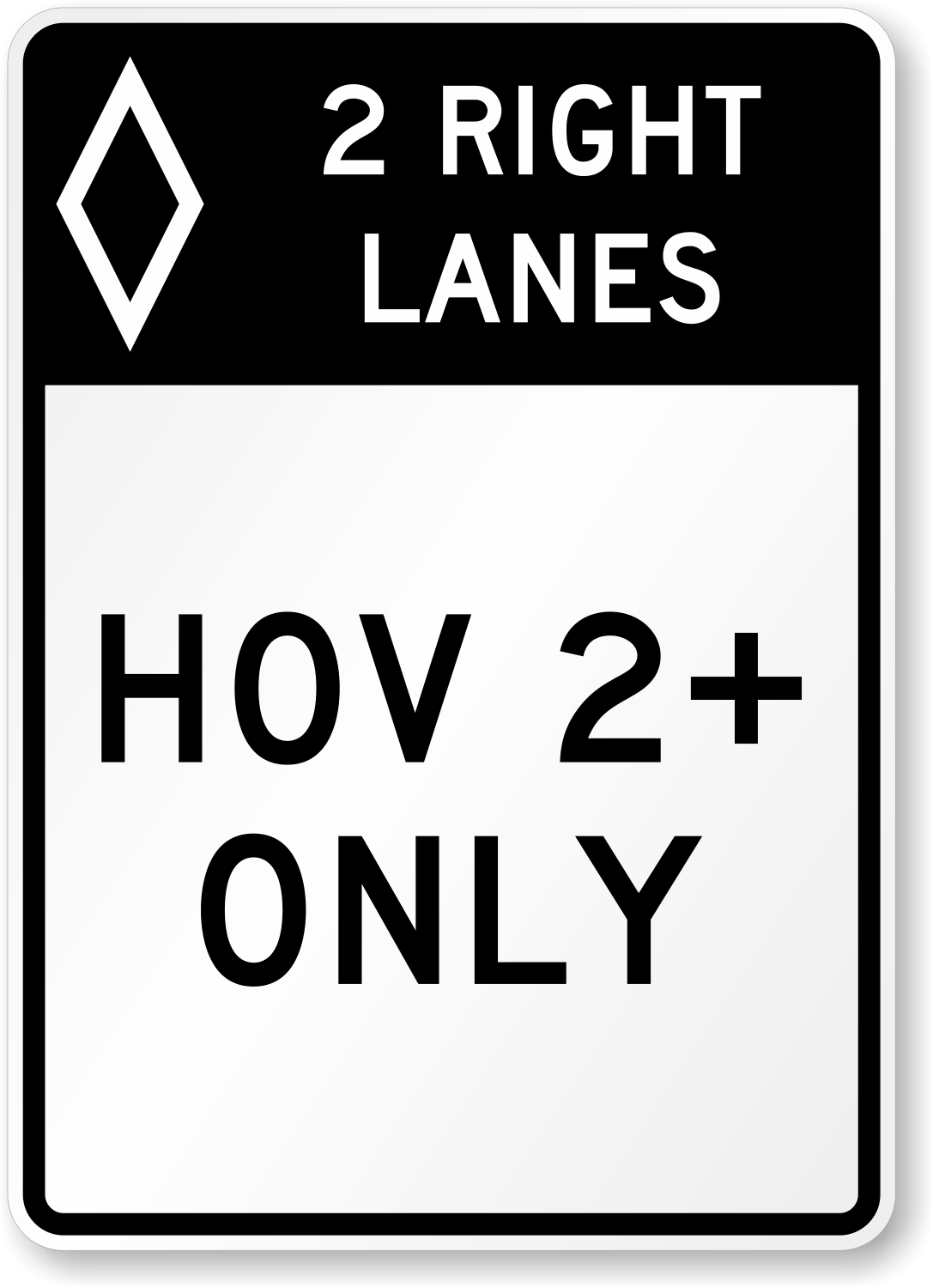 Standard: 01 When used, the post-mounted Periods of Operation (R3-11 series) signs shall be located adjacent to the preferential lane, and the overhead Periods of Operation (R3-14 series) signs shall be mounted directly over the lane. 02 The legend format of the post-mounted Periods of Operation (R3-11 series) signs shall have the following sequence: A.Top Lines: Lanes applicable, such as "RIGHT LANE" or "2 RIGHT LANES" or "THIS LANE" B.Middle Lines: Eligible uses, such as "HOV 2+ ONLY" (or 3+ or 4+ if appropriate) or "BUSES ONLY" or other applicable uses or eligible turning movements C.Bottom Lines: Applicable times and days, such as "7 AM – 9 AM" or "6:30 AM – 9:30 AM, MON-FRI". 03 The legend format of the overhead Periods of Operation (R3-14 series) signs shall have the following sequence: A.Top Line: Eligible uses, such as "HOV 2+ ONLY" (or 3+ or 4+ if appropriate) or "BUSES ONLY" or other applicable uses or eligible turning movements B.Bottom Lines: Applicable times and days, with the time and day placed above the down arrow, such as "7 AM – 9 AM" or "6:30 AM – 9:30 AM, MON-FRI" (When the operating periods exceed the available line width, the hours and days of the week shall be stacked as shown for the R3-14a sign.) 04 For preferential lanes that are in effect on a full-time basis, either the full-time Periods of Operation (R3-11b and R3-14b) signs shall be used, or the legends of the part-time Periods of Operations (R3-11, R3-11a, R3-14, R3-14a) signs shall be modified to display the legend 24 HOURS. 05 The full-time Periods of Operation (R3-14b) sign shall not be used where the preferential lane is in effect only on a part-time basis. 06 If used, the MOTORCYCLES ALLOWED plaque shall be mounted below a post-mounted Preferential Lane Periods of Operation (R3-11, R3-11a, or R3-11c) sign. 07For all barrier- or buffer-separated or contiguous preferential lanes where access is restricted to designated locations, an overhead Periods of Operation (R3-14 series) sign shall be used at the beginning or initial entry point, and at any intermediate entry points or gaps in the barrier where vehicles are allowed to legally access the access-restricted preferential lanes. For all barrier-separated and buffer-separated preferential lanes, post-mounted Periods of Operation (R3-11 series) signs shall be used only as a supplement to the overhead signs at the beginning or initial entry point, or at any intermediate entry points or gaps in the barrier or buffer. 08 For buffer-separated or contiguous preferential lanes where continuous access with the adjacent general-purpose lanes is provided, including those where a preferential lane is added to the roadway and those where a general-purpose lane transitions into a preferential lane, an overhead Periods of Operation (R3-14 series) sign shall be used at the beginning or initial entry point of the preferential lane. 9For all types of direct access ramps that provide access to or lead to preferential lanes, a post-mounted Periods of Operation (R3-11 series) sign shall be used at the beginning or initial entry point of the direct access ramp.