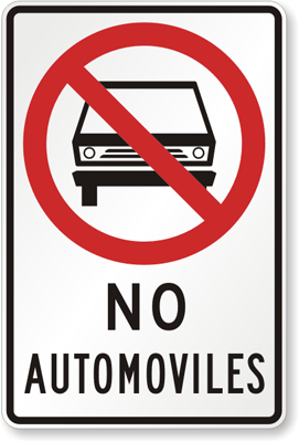 Spanish Traffic Sign: No Automoviles (No Automobiles)(with Graphic) K-7150-SP Learn More...