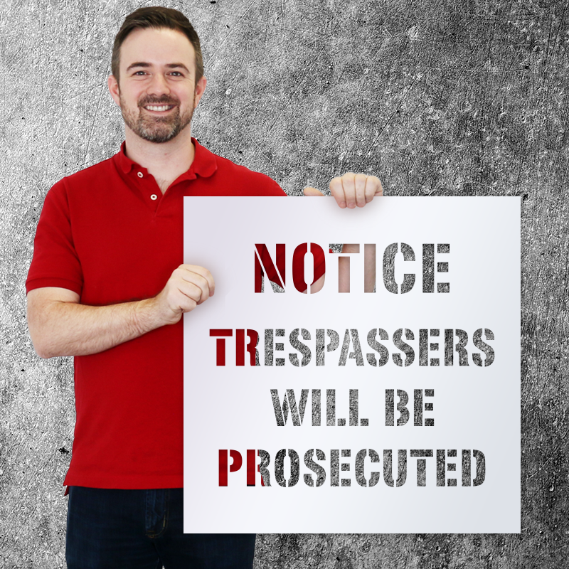 A quick and easy way to notify that trespassing will not be tolerated is through these reusable stencils.