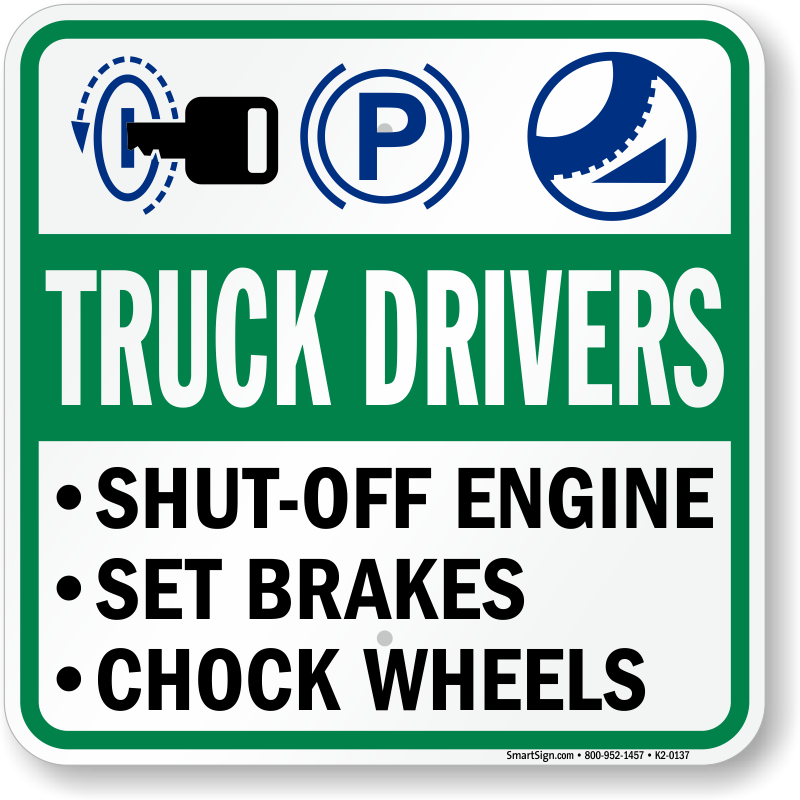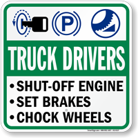 Truck Drivers Sign: Shut-Off Engine, Set Brakes, Wheel Chocks Learn More...