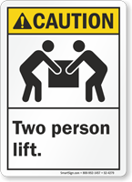 ANSI Caution Sign with easy-to-understand graphic makes sure everyone knows that heavy lifting requires two persons.