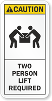 Two person lift required sign makes sure no one gets injured while lifting heavy stuff in your facility.