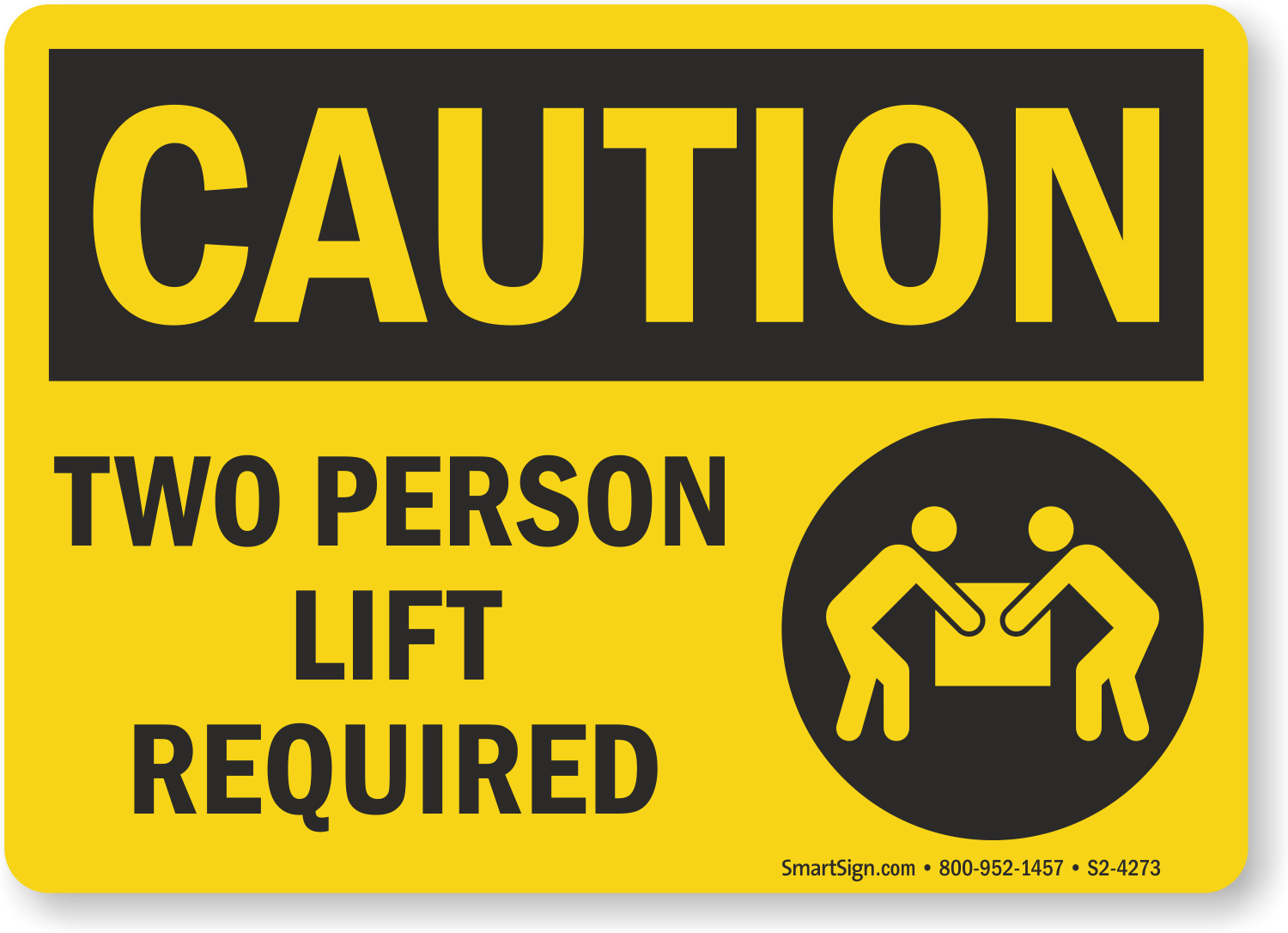 OSHA Caution Sign: Two Person Lift Required S2-4273 Learn More...