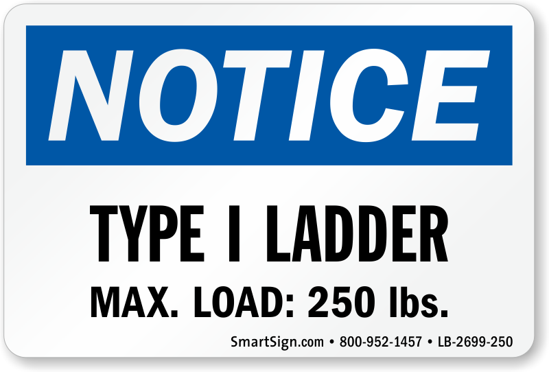 Segregate each type of ladder by proper labeling. Specify the Type I ladder and its maximum load capacity with this OSHA Notice Ladder label and prevent confusion.