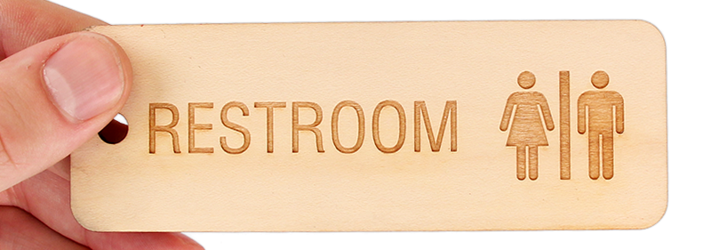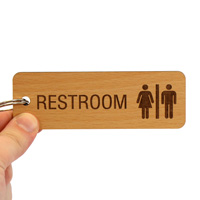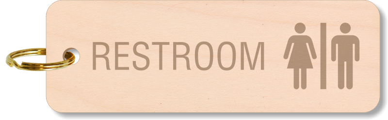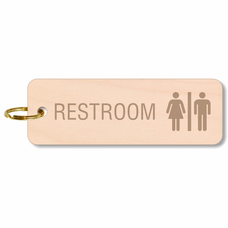 Avoid confusion and quickly identify the key to the restroom by tucking it to this 5 in. X 1 11/16 in. wooden engraved restroom key tag.