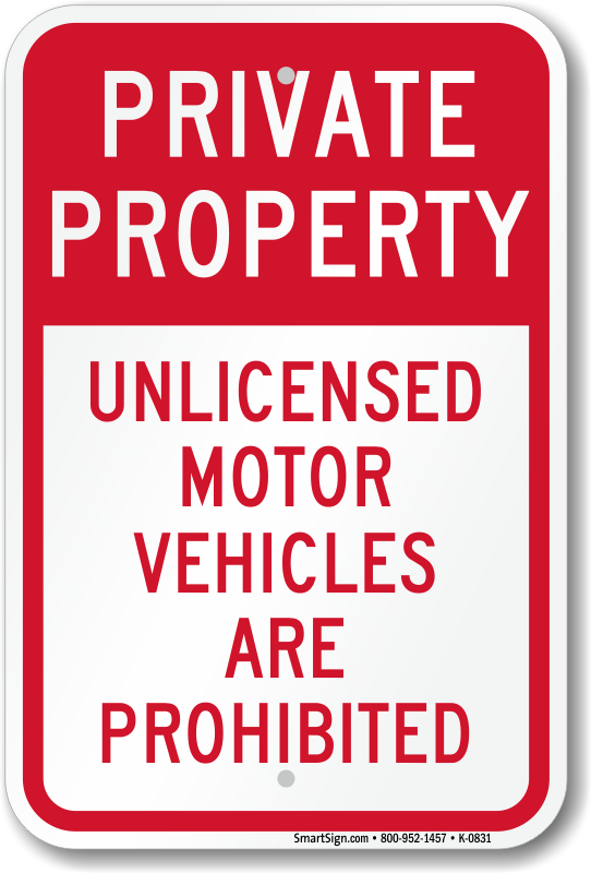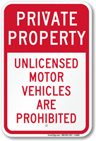 Private Property Sign: Unlicensed Motor Vehicles Are Prohibited K-0831 Learn More...