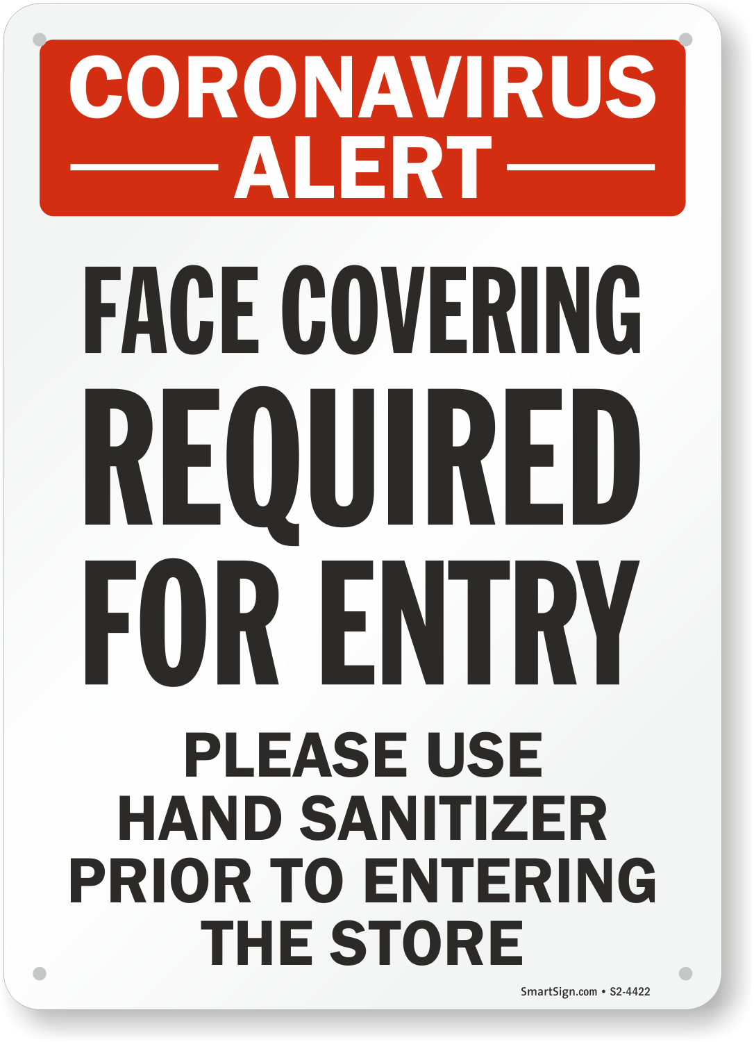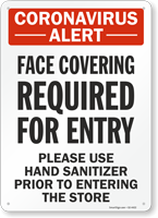 Request people to wear masks and sanitize their hands before entering your store. Post our high-visibility Coronavirus alert sign.