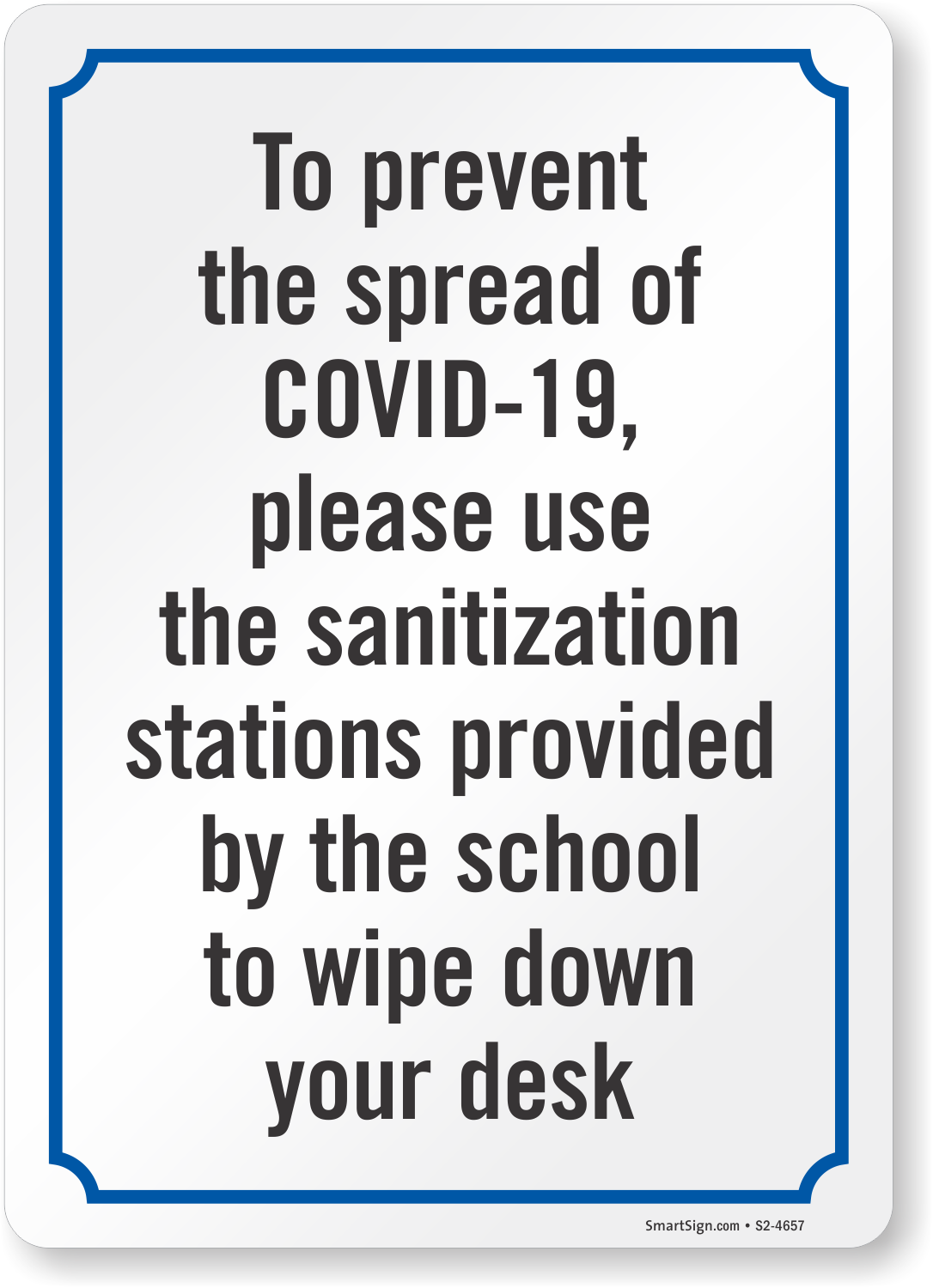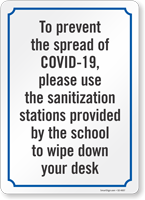 Social Distancing Sign: To Prevent The Spread Please Use The Sanitation Stations Provided By The School To Wipe Down Your Desk S2-4657
