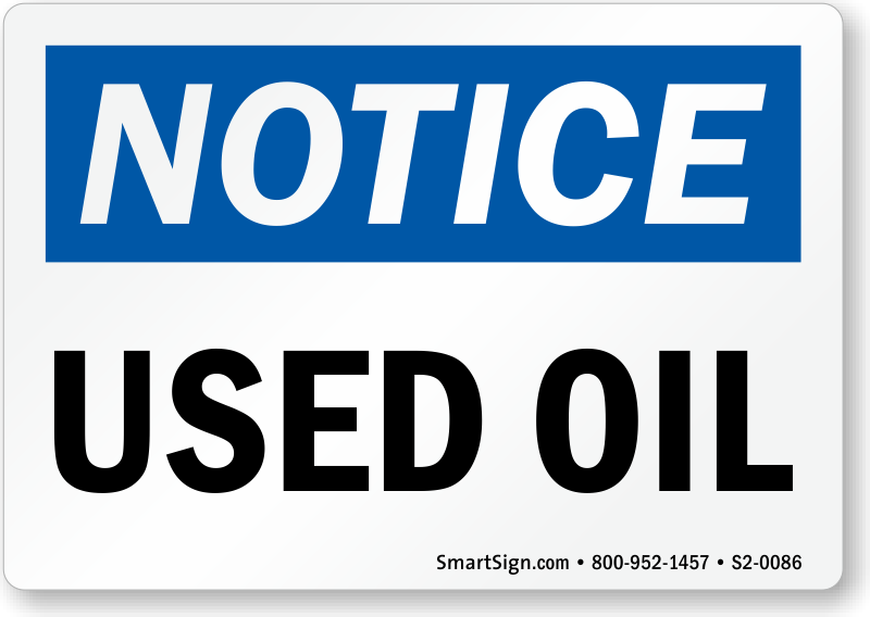A small OSHA Notice Sign makes sure everyone knows about the storage of 'Used Oil'.