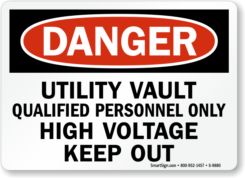 Use this danger, keep out sign to remind others that only qualified personnel are allowed in a utility vault. You can never be too cautious, as utility vaults contain extremely high voltage.