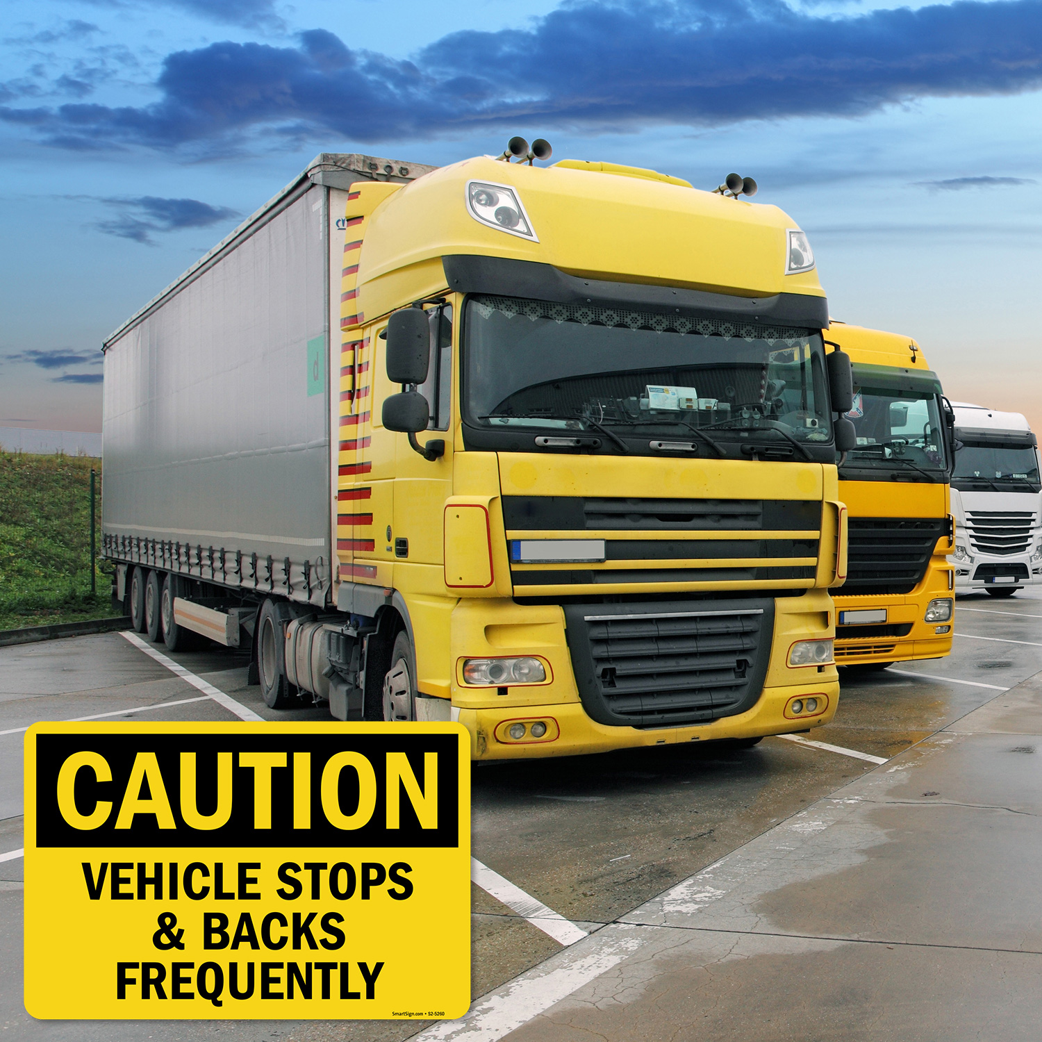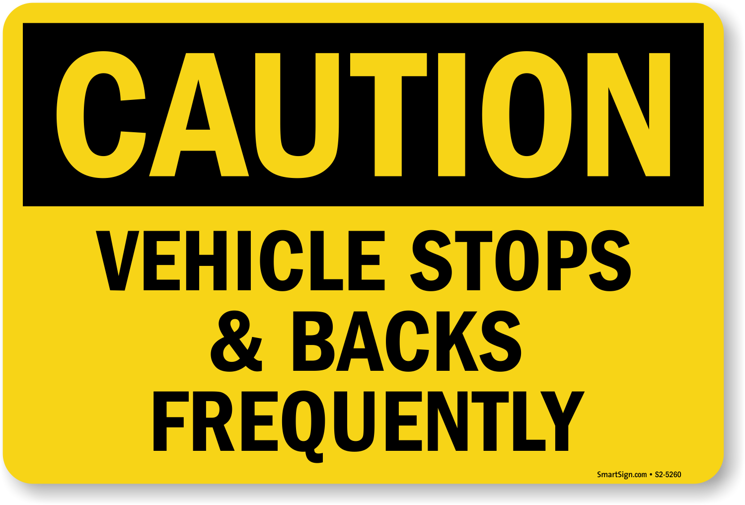 OSHA Caution Sign: Vehicle Stops & Backs Frequently S2-5260