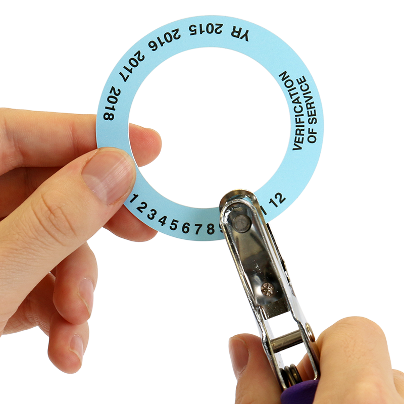 Punch any of the four years and twelve months on this Verification of Service Collar to show when your fire extinguisher was last inspected or recharged.