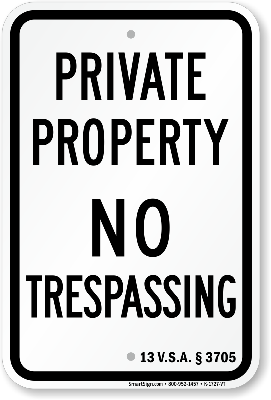 Vermont No Trespassing Sign: Private Property – 13 VSA § 3705 K-1727-VT Learn More...