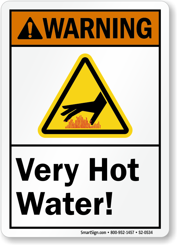 ANSI Warning Sign: Very Hot Water (With Hand Burn Graphic)