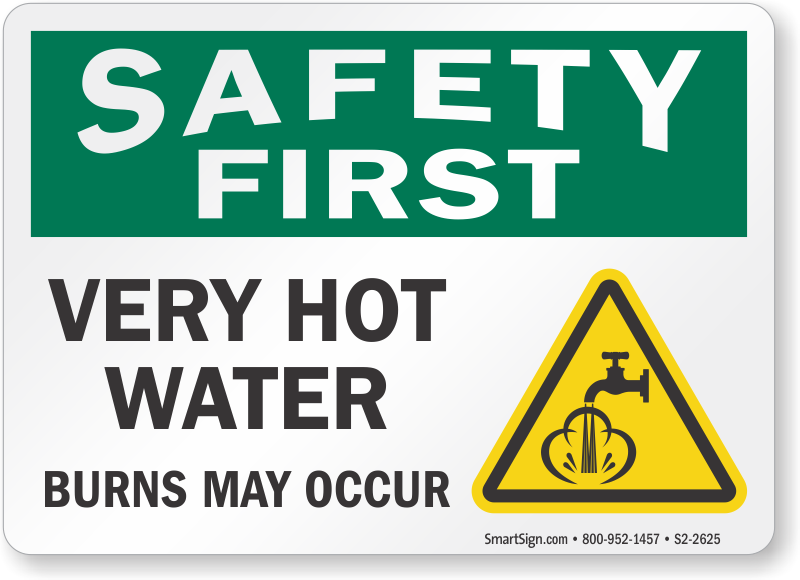 Safety First Sign: Very Hot Water, Burns May Occur