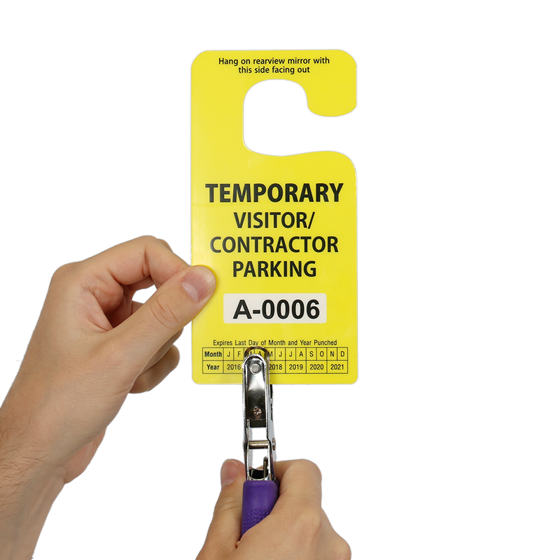 Allot this Parking Permit Hang Tag to visitors/contractors for a limited period. Punch out option helps you specify the month and year of expiration.