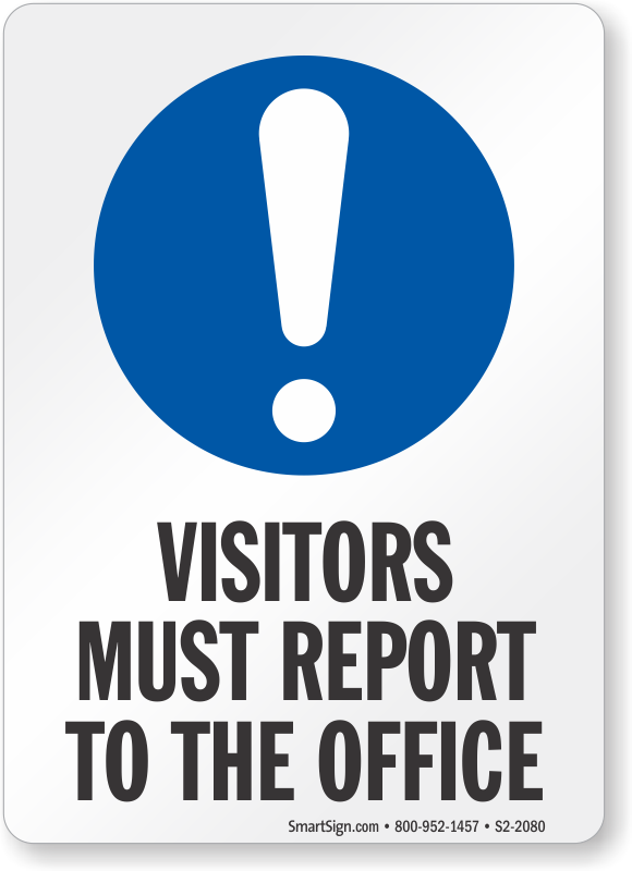 With a rigid sign or a flexible label, instruct visitors to report to the office.