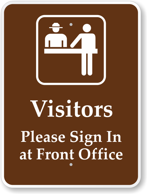 Campground Sign: Visitors - Please Sign In At Front Office With Graphic K-0615 Learn More...