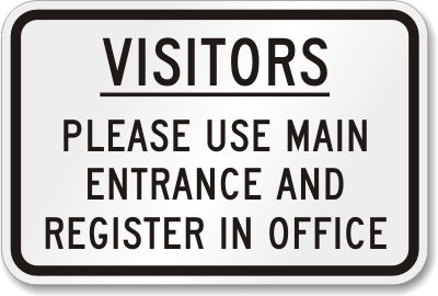 Visitors Must Register Sign: Please Use Main Entrance And Register In Office K-2935 Learn More...
