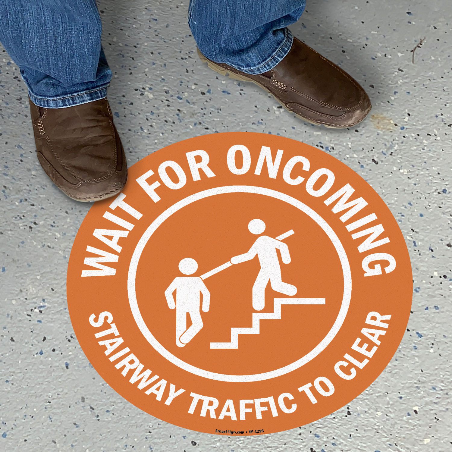 SlipSafeâ„¢ Floor Sign: Wait For Oncoming Stairway Traffic To Clear SF-1226