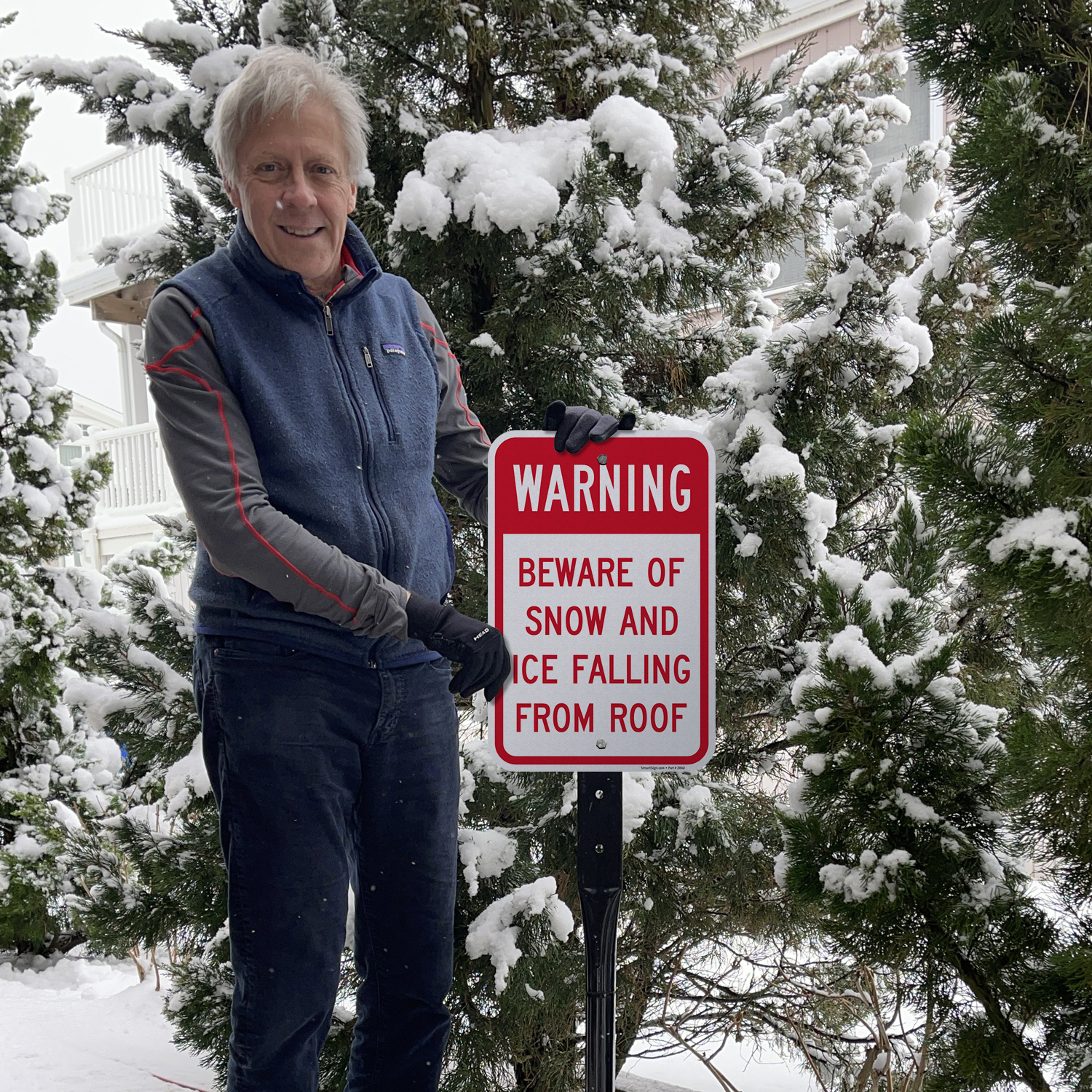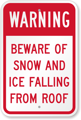 Ice and Snow Warning Sign: Beware Of Snow And Ice Falling From Roof Learn More...