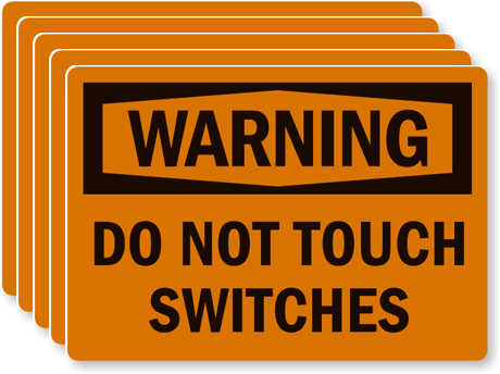 3.5in. x 5in. Laminated Vinyl Labels (Set Of 5): OSHA Warning - Do Not Touch Switches L-0269-VS Learn More...