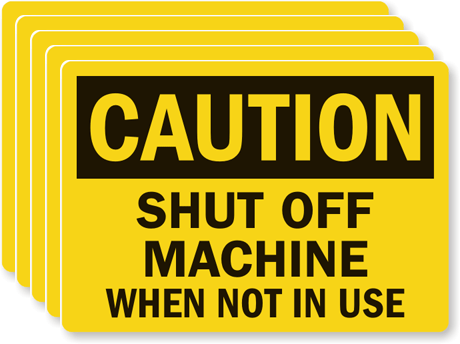 3.5in. x 5in. Laminated Vinyl 5 Labels/Pack: OSHA Caution - Shut Off Machine When Not In Use L-0278-VS Learn More...