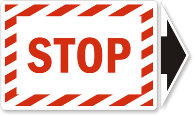 3.5" x 5" Laminated Vinyl Label with Arrow (2 pcs.): Stop (with Detachable Arrow) L-0308-XV Learn More...