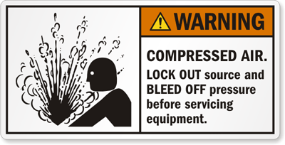 ANSI Warning Safety Label: COMPRESSED AIR, LOCK OUT source and BLEED OFF pressure before servicing equipment. LB-0258 Learn More...