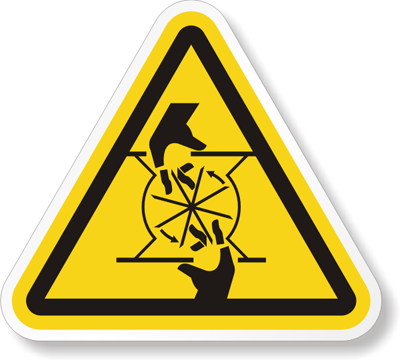 ANSI Z535.4 and ISO 3864-2 Triangle Warning Safety Label: Cutting of Fingers or Hand, Rotating Blade (with Symbol) LB-0217 Learn More...