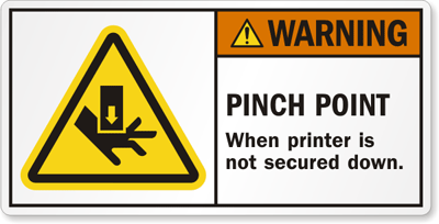 ANSI Warning Safety Label: Pinch Point When Printer Is Not Secured Down LB-0120 Learn More...