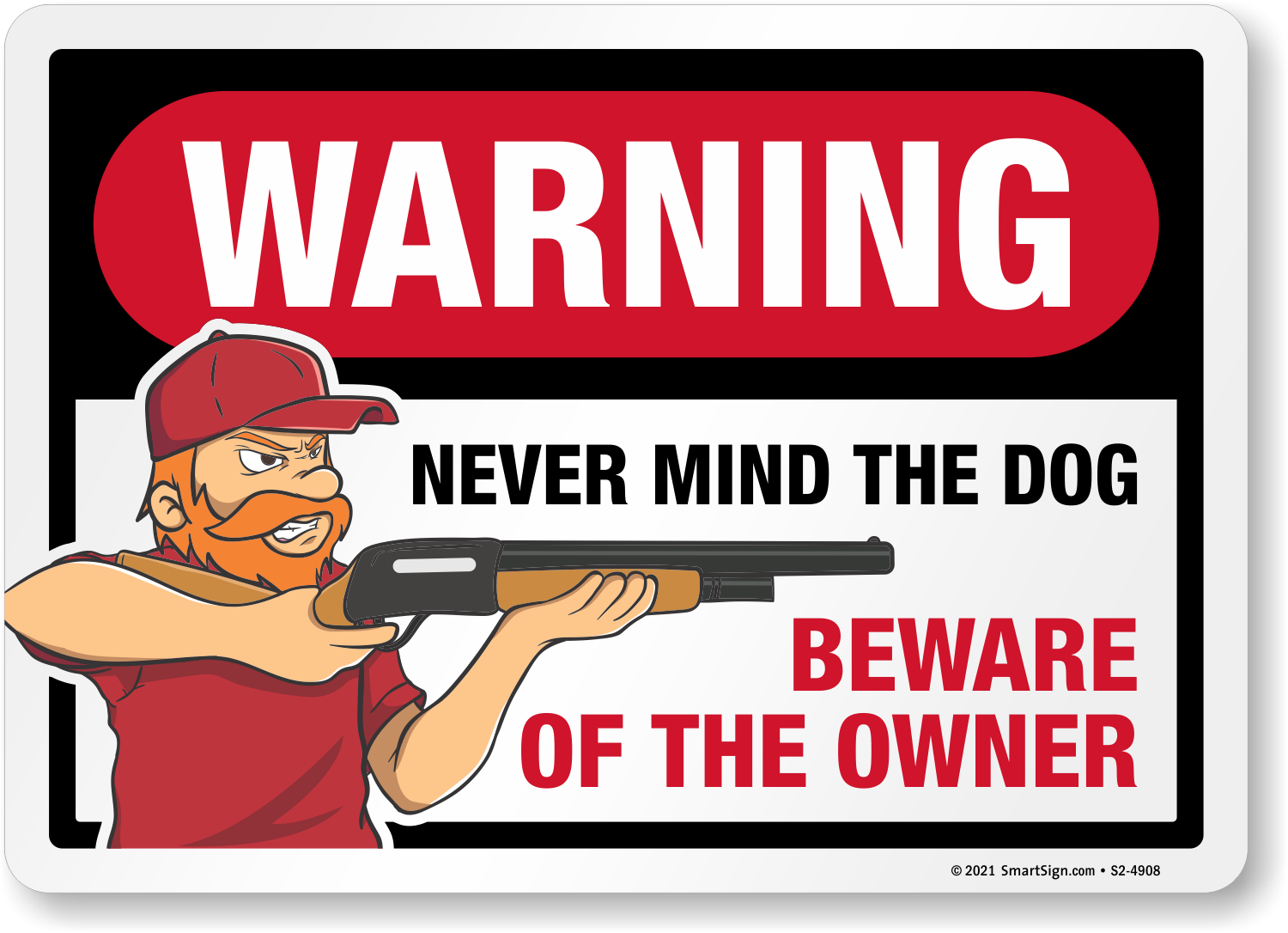 Gun Owner Signs: WARNING: Nevermind the Dog, Beware of the Owner S2-4908