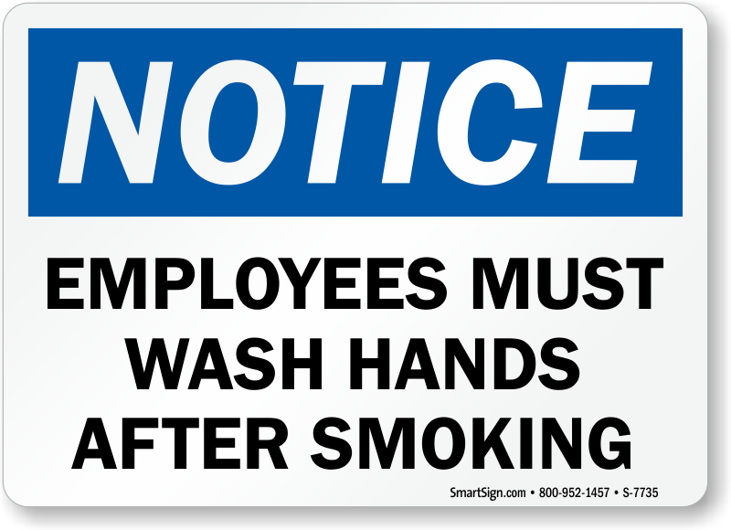 Hand Hygiene Notice Sign: Employees Must Wash Hands After Smoking S-7735
