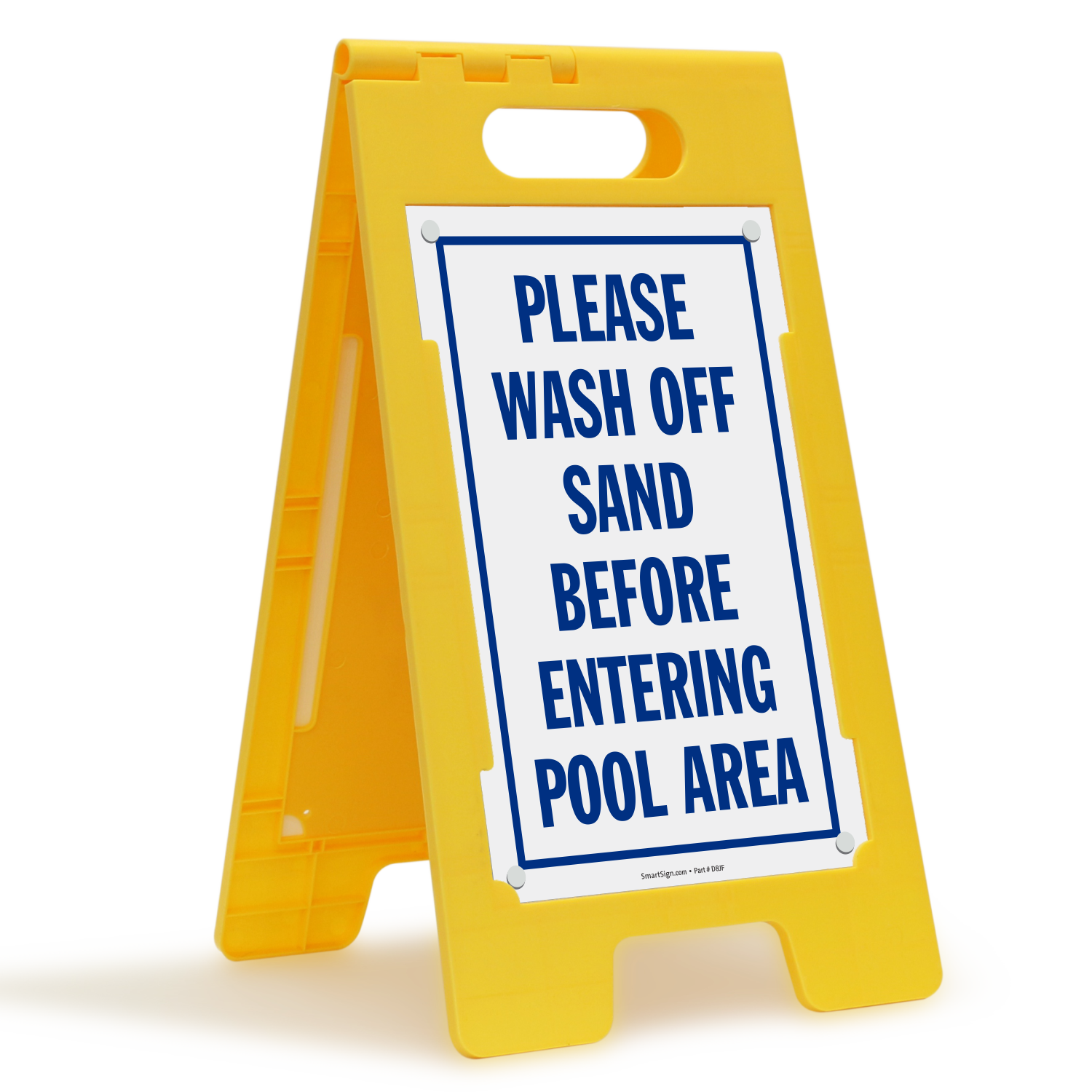 FloorBoss Standing Floor Sign: Please Wash Off Sand Before Entering Pool Area SF-0350 Learn More...
