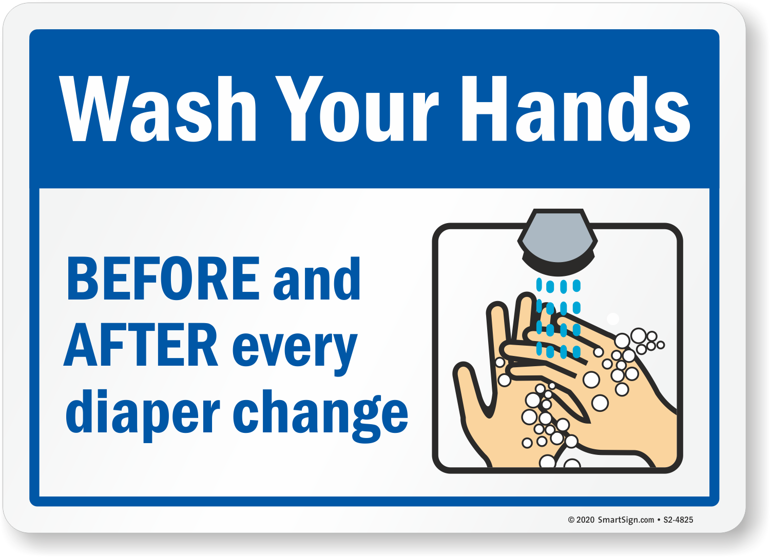 Wash Your Hands Sign: Wash Your Hands Before and After Every Diaper Change S2-4825
