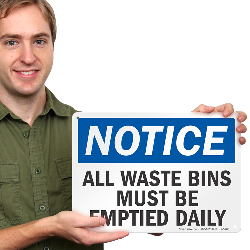 Place this All Waste Bins Must Be Emptied Daily OSHA Notice Sign to get the dumpster cleaned daily.