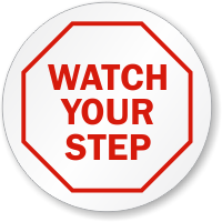Install Watch Your Step Circle Shaped Label to remind people to walk cautiously. Label alerts everyone of slip, trip, and fall hazards.