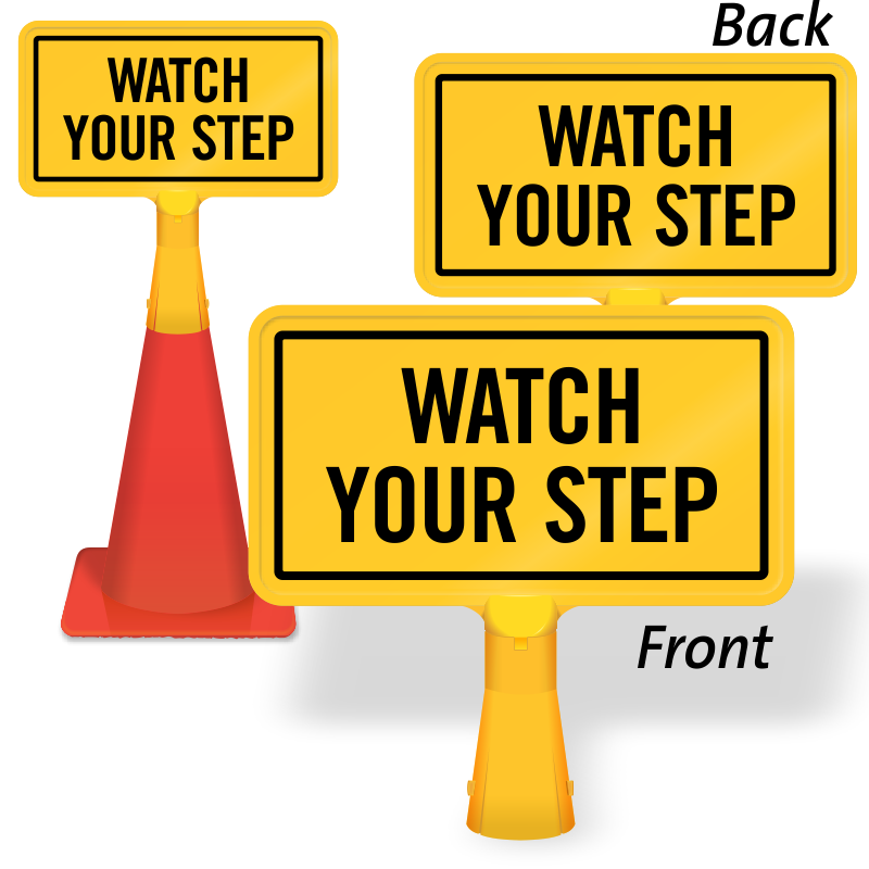 Prevent slips, trips or falls. This highly visible no-tip, portable Traffic Cone Sign reminds people to walk cautiously.