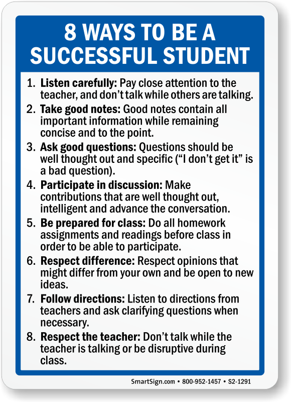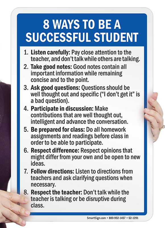 Let your students know that they need to adopt these 8 good habits to be on the right path and become a successful student. Post this sign in classrooms or corridors.