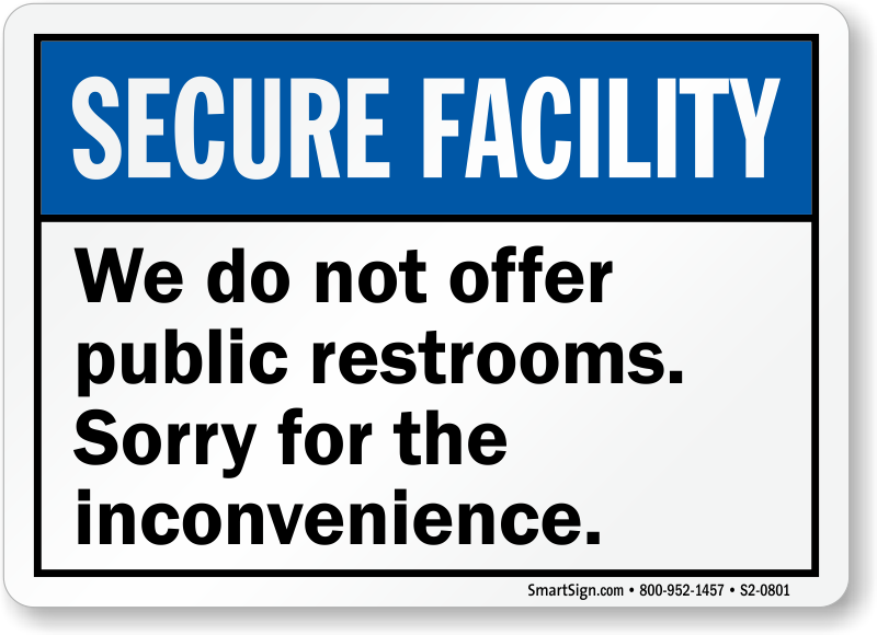 Secure Facility Sign: We Do Not Offer Public Restrooms Sorry For The Inconvenience S2-0801