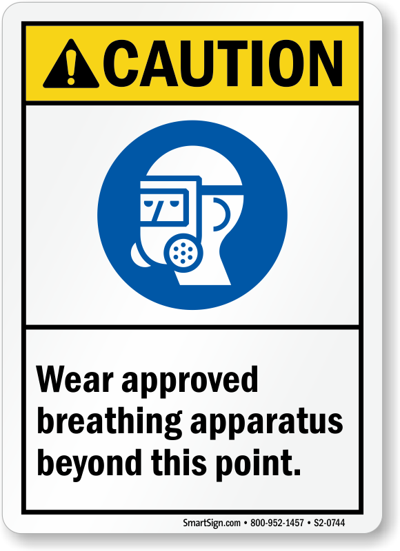 ANSI Caution Sign: Wear Approved Breathing Apparatus Beyond This Point (With Graphic)